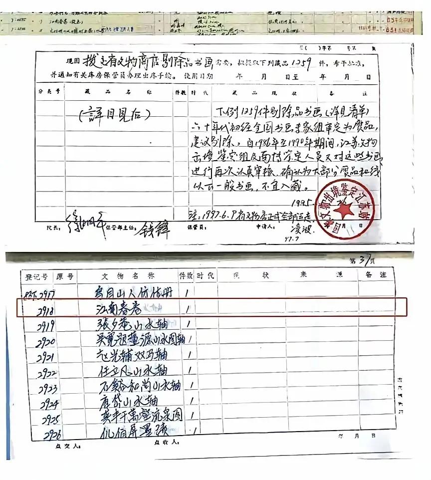 更令人担忧的是,南京博物院未能提供画作下落的有效证据。除《江南春》图卷因近期拍卖有迹可循外,其他四件藏品目前仅有捐赠时留下的手写文字记录,去向成谜。