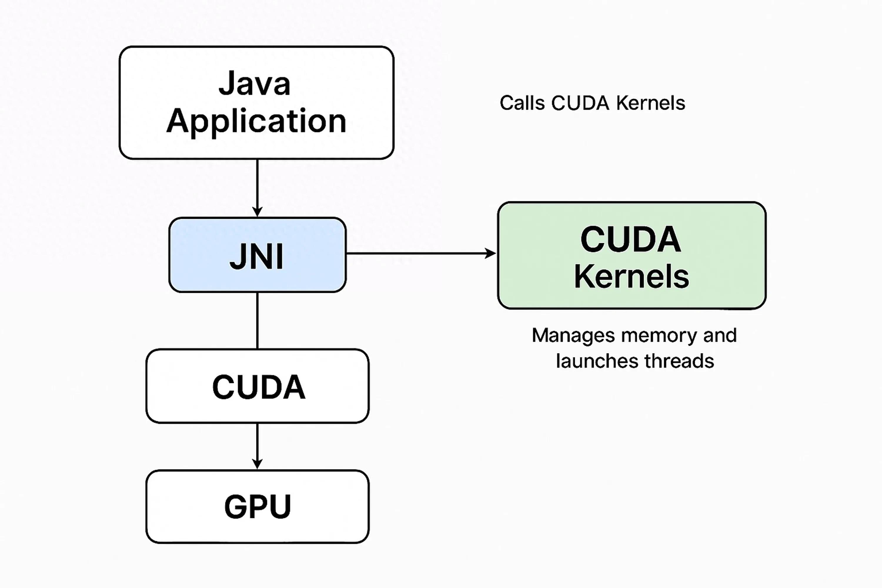 图 1:通过 JNI 的 Java–CUDA 集成架构