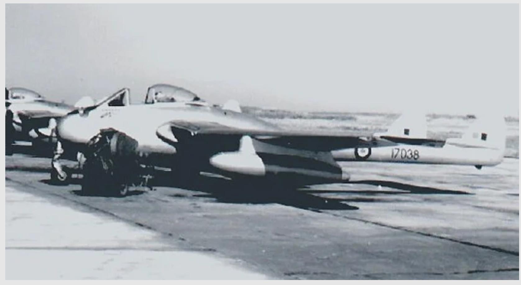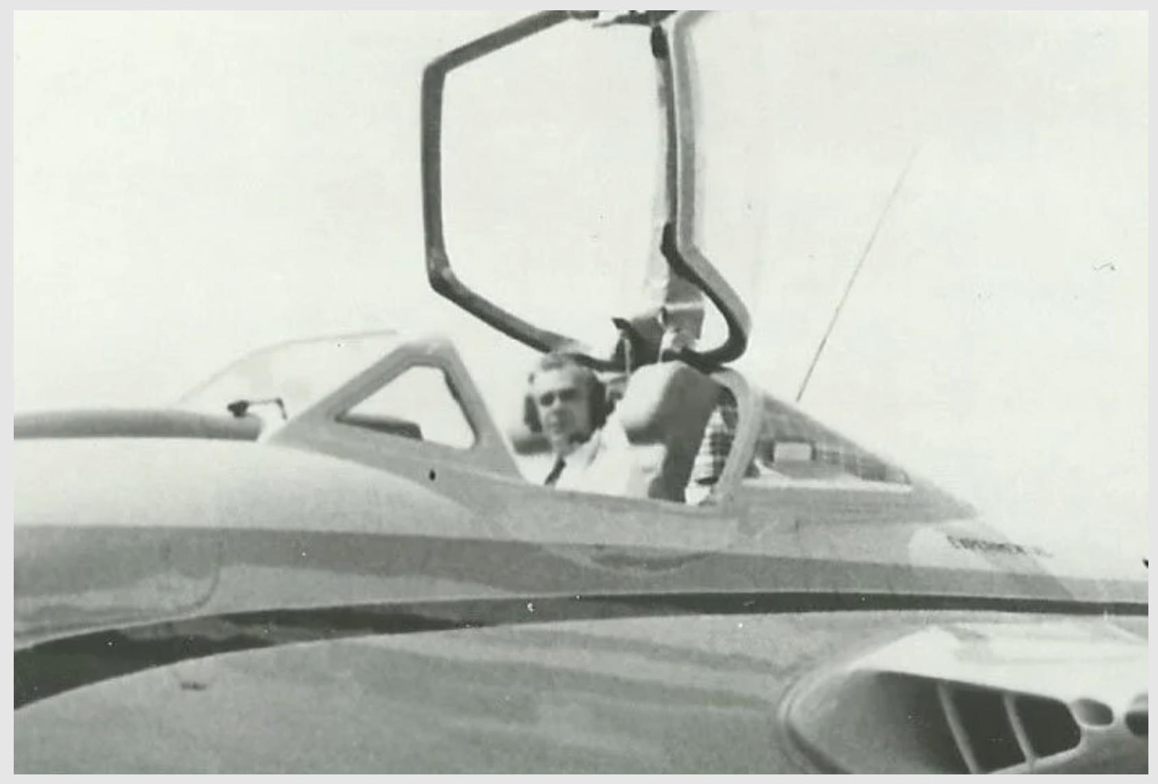 1958年约翰尼·斯凯罗克带着他的“金色吸血鬼喷气”来到美国,是的就是一架英国退役的德哈维兰DH-100“吸血鬼”喷气式战斗机。后来加入到美国的空中表演市场,显而易见由于二战后大量的飞行员和战斗机退役,当时美国的空中表演市场竞争非常激烈,但约翰的优势是他有一架真正的喷气式战斗机,这在当时可是稀罕货。
