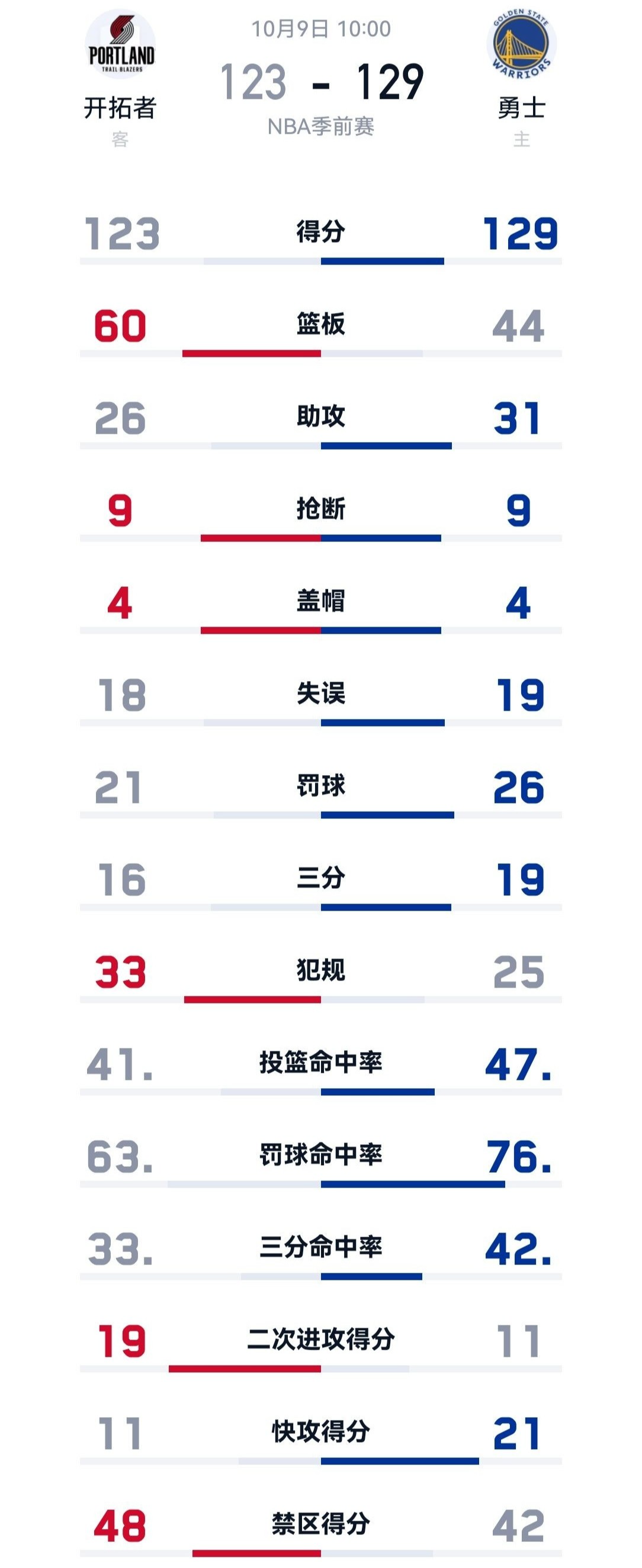 2025年10月9日,金州勇士主场迎来与开拓者的季前赛对决。谁也没想到,这场看似普通的热身赛,最终演变成一场惊心动魄的翻盘大戏。面对开拓者一度拉开的21分巨大差距,勇士队在末节突然爆发,凭借替补阵容掀起的进攻狂潮,最终以129-123完成惊天逆转,斩获季前赛两连胜。