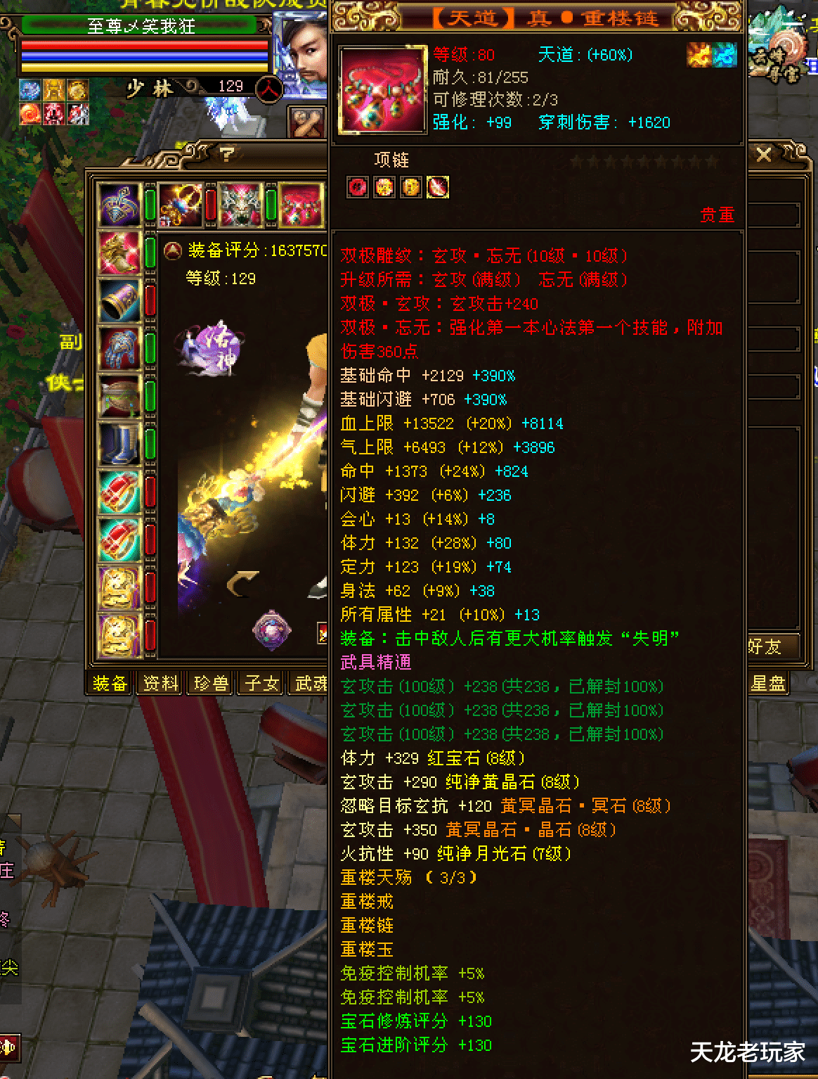 还有一条绑定真链子尚未考察到。而不绑定的真重楼链则有9条,目前已知的是【上海滩】服务器两条,一条在至尊笑我狂身上,笑我狂身上还有个不绑定的真重楼戒。