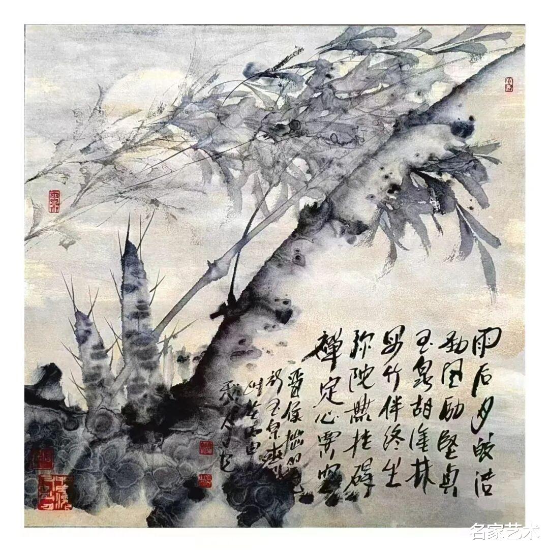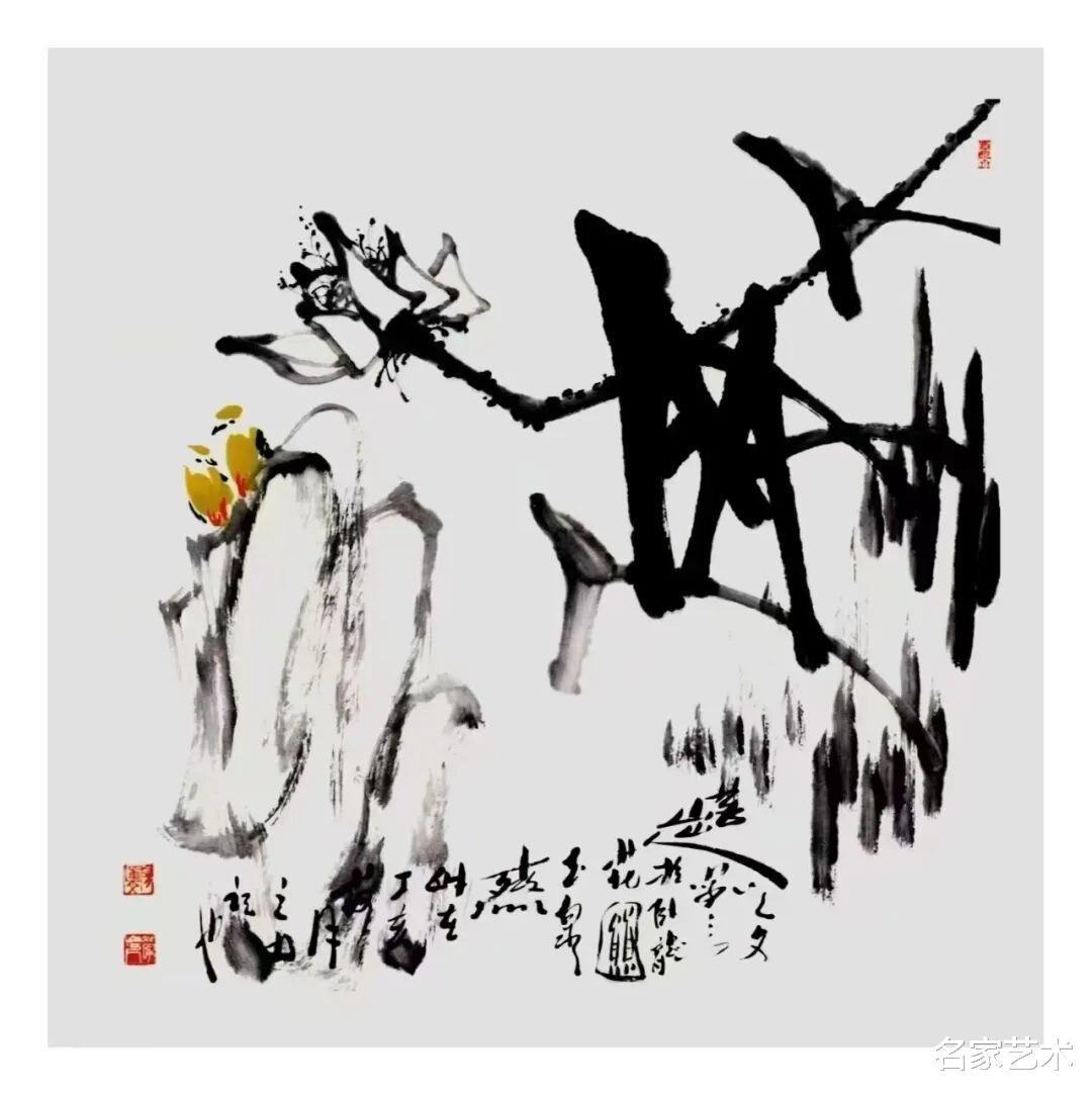 隋进文的大写意作品,是笔墨与心性的酣畅共鸣。他以苍劲老辣的线条立骨,墨色浓淡间尽显气韵流动,寥寥数笔便让花鸟、山水挣脱形似束缚,跃出盎然生机。