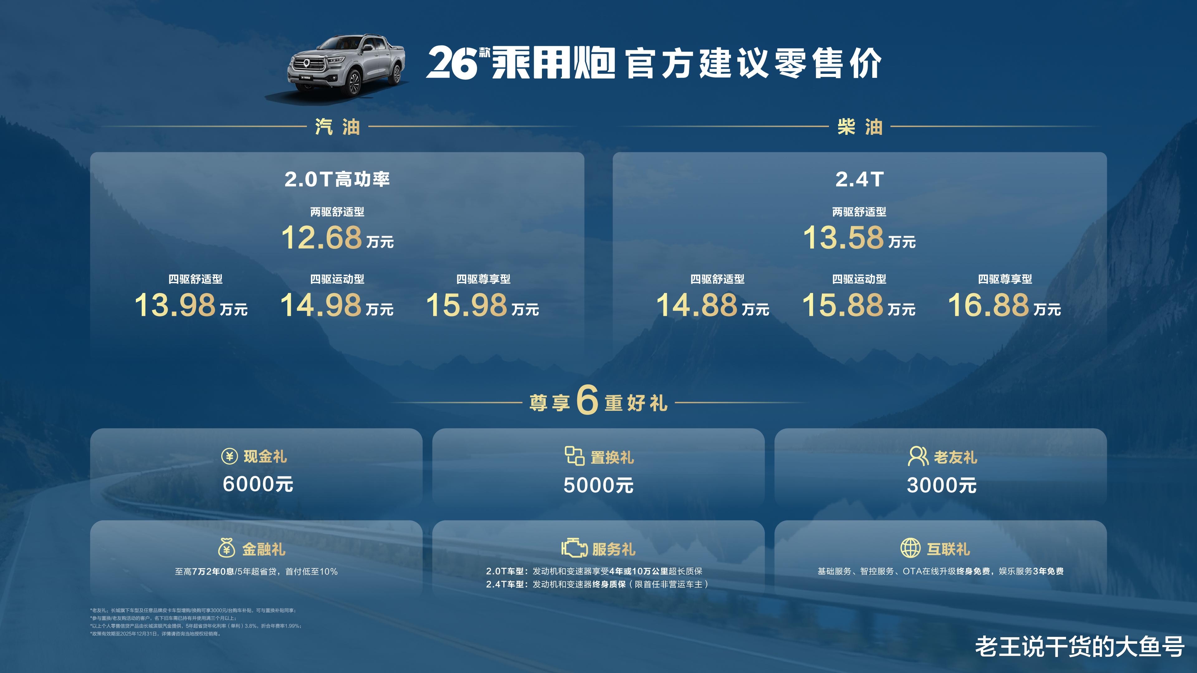 2026款商用炮,基于坦克平台打造,是同级动力最强、性价比最高、最成熟可靠的冠军皮卡。