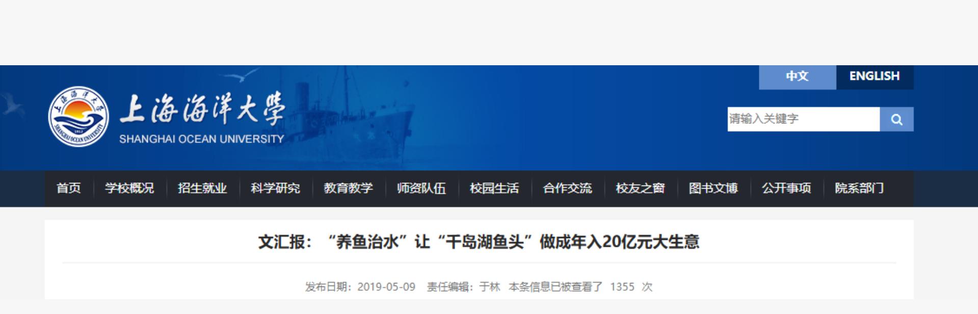 上海海洋大学 “养鱼治水”让“千岛湖鱼头”做成年入20亿元大生意 2019-05-09
