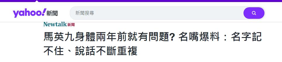 参考资料:馬英九身體兩年前就有問題? 名嘴爆料:名字記不住、說話不斷重複Newtalk新聞 |楊祖宇 綜合報導
