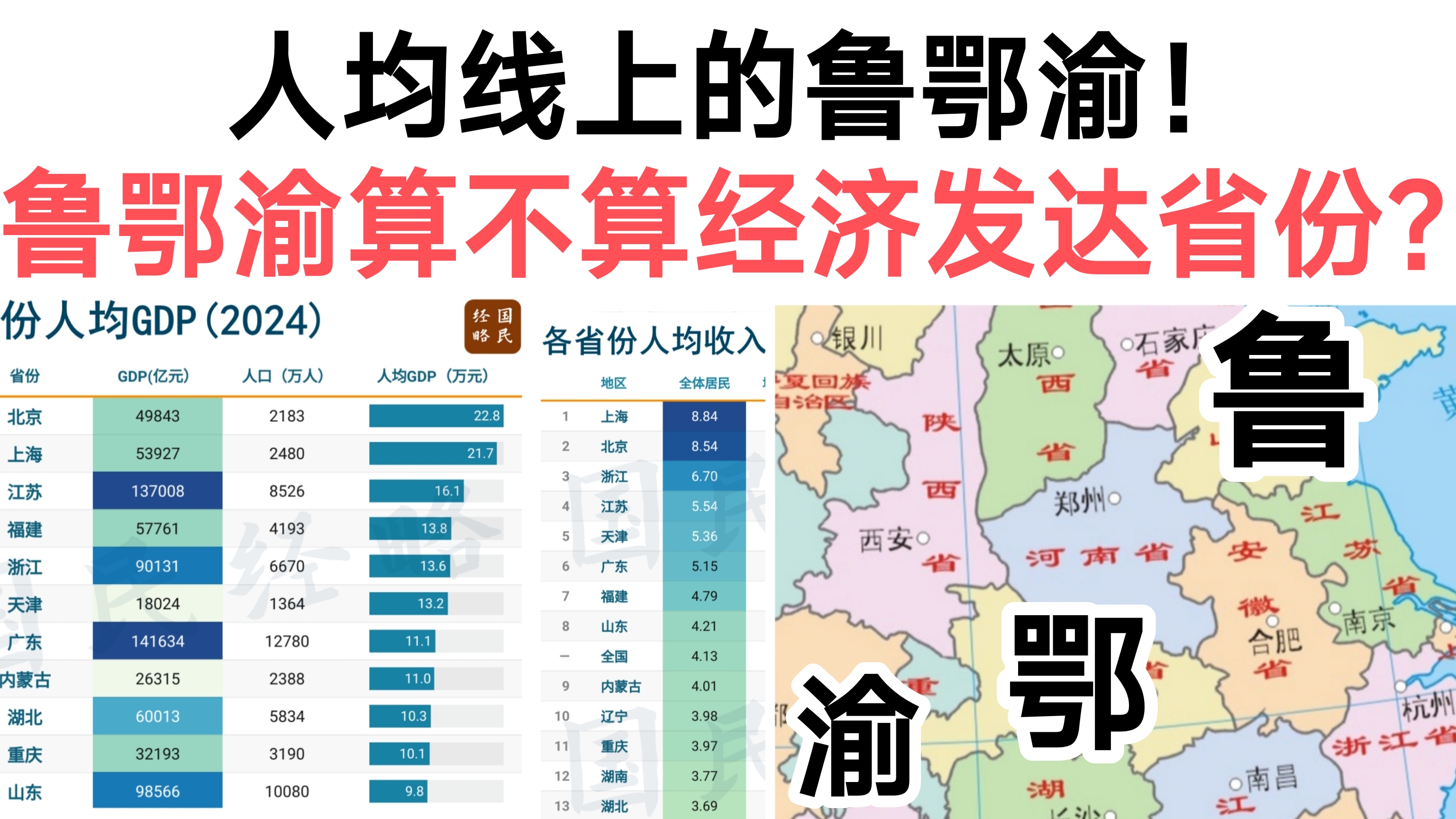其实就全国人均经济格局来说,鲁鄂渝三省之前是没有争议的京津沪粤苏浙闽等经济发达省市;鲁鄂渝之后是国内20多个经济非发达省市。山东再奋斗几年,彻底迈入国内经济发达省份将不是问题。但是山东地处我国东部沿海,我国7个经济发达省市且都在沿海地区。山东的加入对沿海来地区说,也就只是起到锦上添花的作用。但是湖北和重庆能够入列国内经济发达省市的意义就不一样了。目前湖北是中西部地区人均GDP最高的省市,重庆是中西部地区人均可支配收入最高的省份。接下来几年如果湖北和重庆能够补上人均可支配收入短板,使得人均可支配收入高于全国平均水平的话。那么湖北和重庆就能补上中部地区和西部地区没有经济发达省份的短板了。中部和西部地区就可以实现经济发达省份的零的突破。湖北和重庆共同加油!