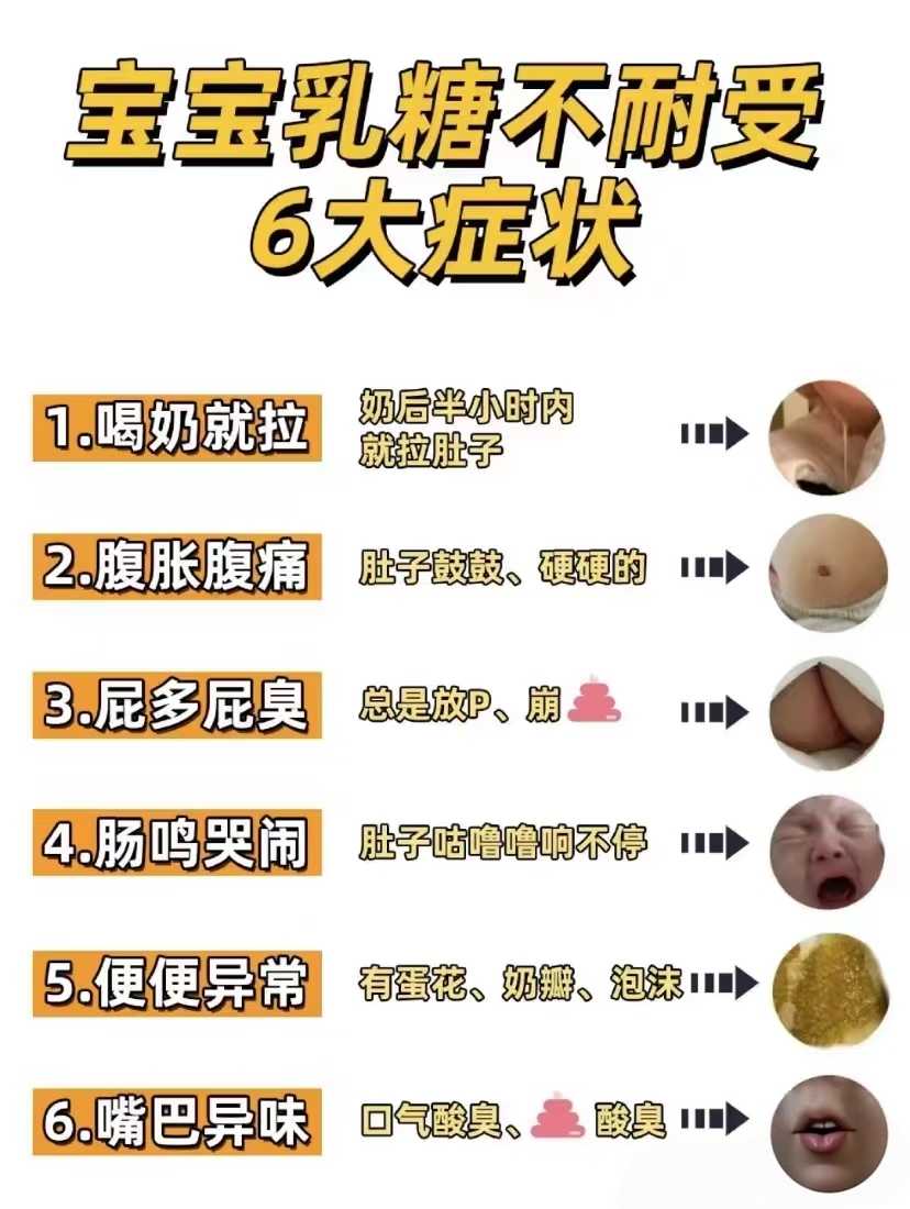 如果你家宝宝出现了以下情况,尤其是中了好几条,那大概率就是乳糖不耐受在作祟了: