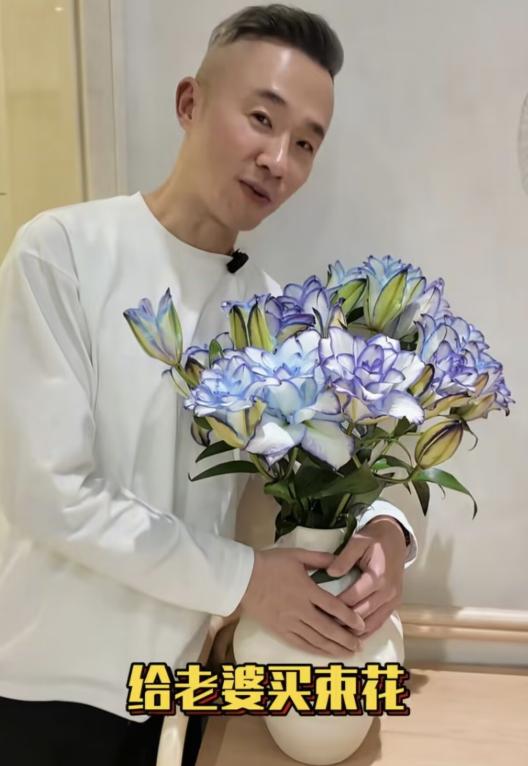今年1月13日他又去花市给老婆买花,回来之后自己修剪插花,弄得特别用心。
