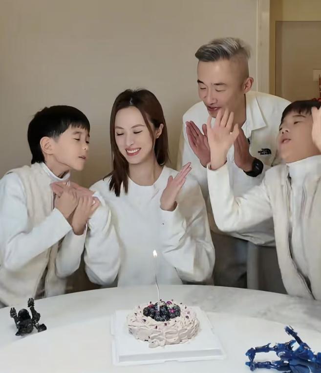 两个儿子已经长成了小帅哥,一家四口的照片看起来特别温馨。