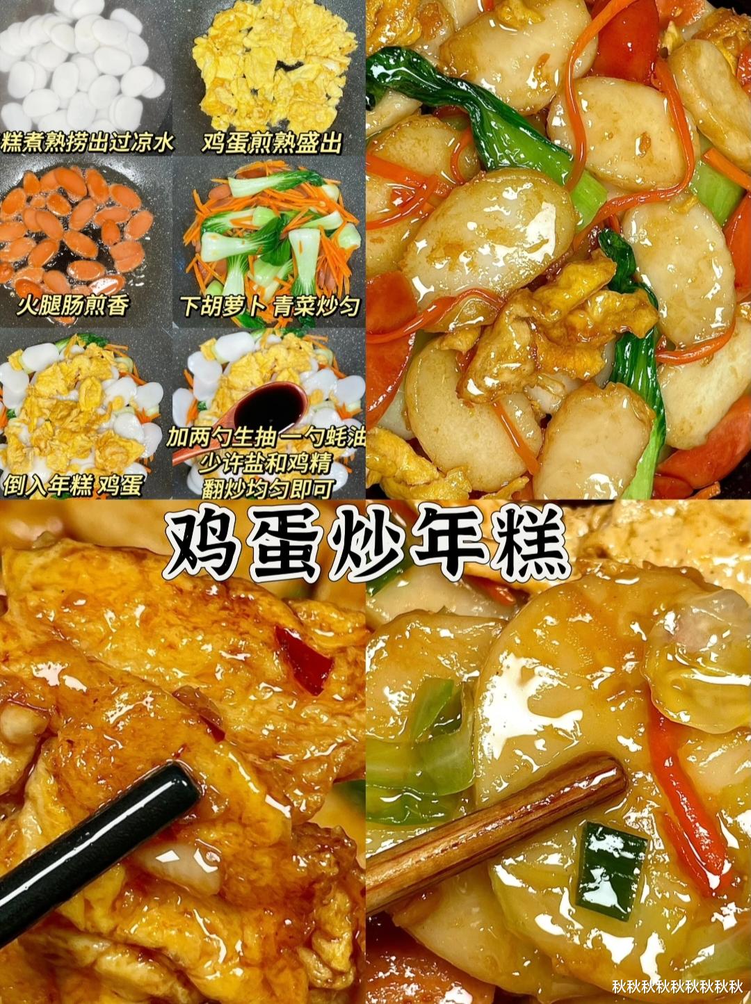 制作鸡蛋炒年糕时,年糕煮的时间不宜过长,以免过于软烂影响口感,炒制过程中要快速翻炒,让食材均匀受热。