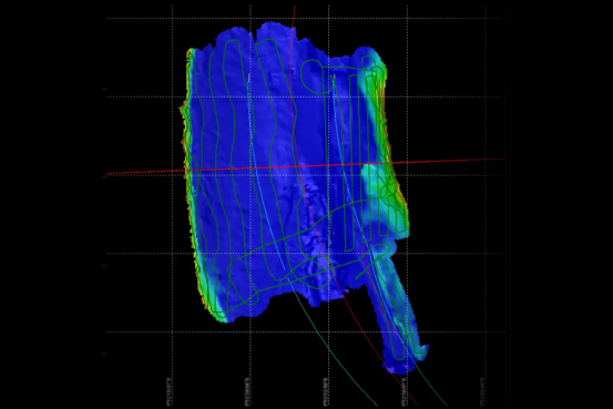 数据采集完成后,技术人员使用CMS多波束内业软件对原始数据进行处理:将不同高程区域以颜色梯度区分,深蓝色区域表示水底高程低于38.5米的达标区域。通过将测量生成的数字高程模型与设计图纸叠加,工程验收人员可直观查看大桥中线、航道边线等关键位置的地形数据,快速判断疏浚工程是否满足设计要求。