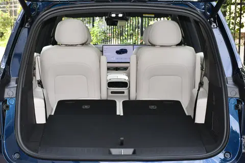 另外,后备箱灵活性也强。第三排座椅能电动放倒,操作简单,放倒后容积能到 1392L。我们试过把摄影器材、折叠自行车和两个大行李箱放进去,还有剩余空间。要是四口之家出行,把第三排收起来,后备箱能装下露营装备、婴儿车,甚至滑雪板,真正能做到 “带上全家的东西出门”。
