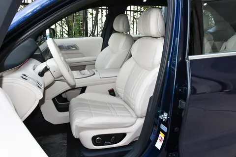 车身侧面比例很协调,5205mm 的车长和 1996mm 的宽度,让它看着不小但不笨重,日常停车、过窄路时,也不会觉得难操控。21 英寸的轮毂造型挺特别,和车身风格搭得上,跑起来时视觉效果也不错,而且对行驶稳定性有实际帮助。弹出式门把手不仅好看,还能降低风阻,官方说风阻系数是 0.258,这个数据在同级别里算不错的,高速跑起来时,对能耗控制有帮助。