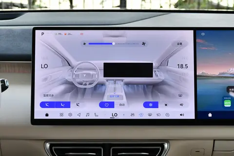 车内氛围让人觉得舒服,不像有些车型满是科技感却少了温度。浅色内饰搭配木纹饰板和皮质包裹,有点像家里的客厅,一上车就觉得放松。中控是两块 15.6 英寸的 2.5K 高清联屏,显示很清晰,操作时没出现卡顿,界面设计简洁,功能分区清楚,就算是不常接触车机的老人,也能很快找到需要的功能。
