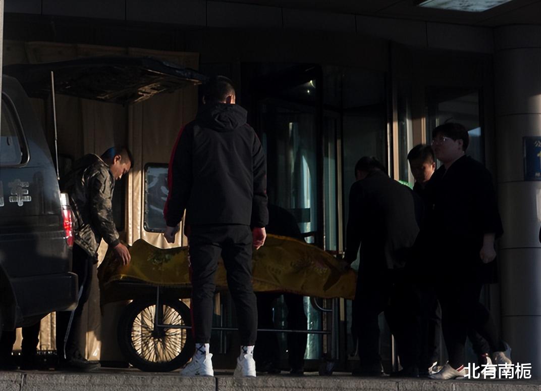 家属出来之后,把担架抬到楼道口,很久也没有人出来。