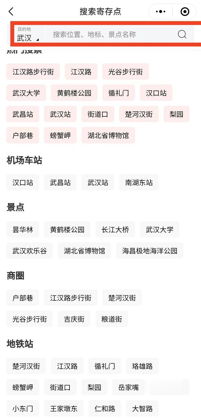 武汉寄存点• 武汉站• 武昌站• 汉口站• 光谷广场• 循礼门• 江汉路/汉口历史文化风貌区• 楚河汉街• 司门口黄鹤楼• 户部巷• 小洪山地铁站• 东湖/湖北省博物馆• 光谷国际网球中心/首创奥莱...⭕️全国190多个城市都有寄存点,寄存点遍布地铁站/商圈/景点/机场/车站/场馆。