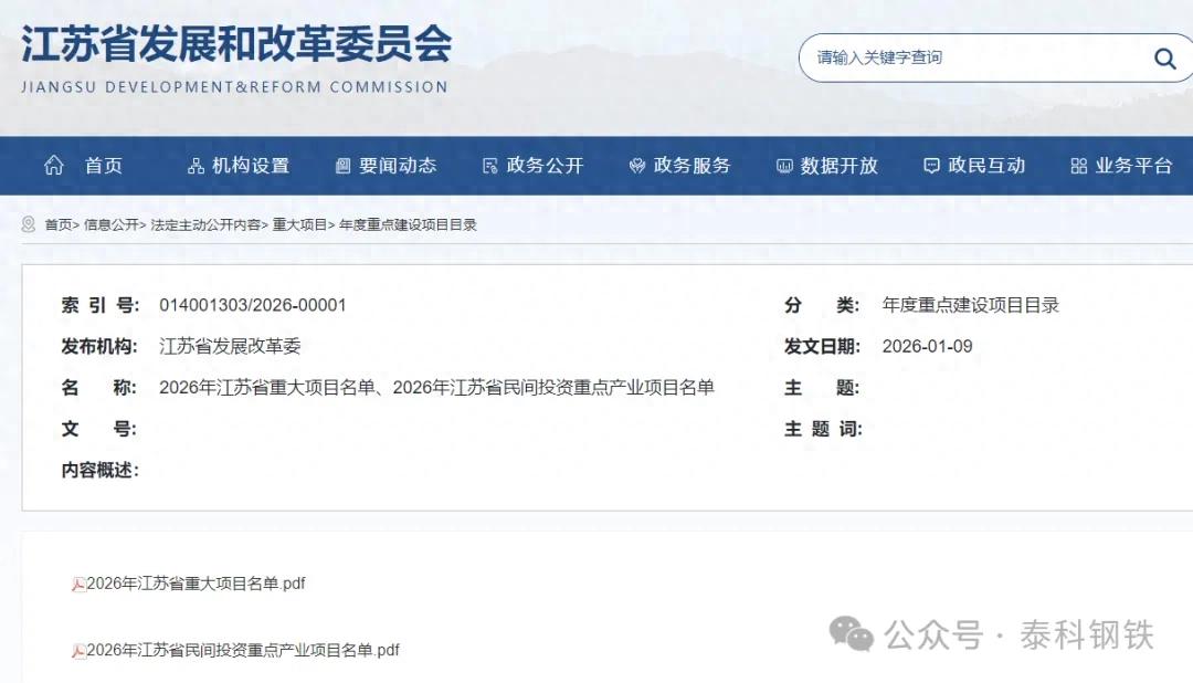2026年1月19日,四川省人民政府印发《关于做好2026年四川省重点项目工作的通知》,对2026年省重点项目工作进行全面部署,并随文发布《2026年四川省重点项目名单》,共涉及830个项目,其中续建项目526个,新开工项目304个。其中钢铁及相关领域项目7个。