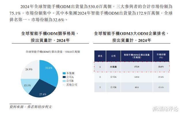 根据弗若斯特沙利文数据,以2024年出货量计,龙旗科技是全球第二大消费电子ODM厂商,市场份额达22.4%,仅次于华勤技术(Huaqin)。其中在智能手机ODM细分领域,出货量达1.73亿台,稳居全球第一,市场份额高达32.6%。与全球十大智能手机品牌(以出货量计)中的八家建立业务合作,且平均合作年限都在五年以上。