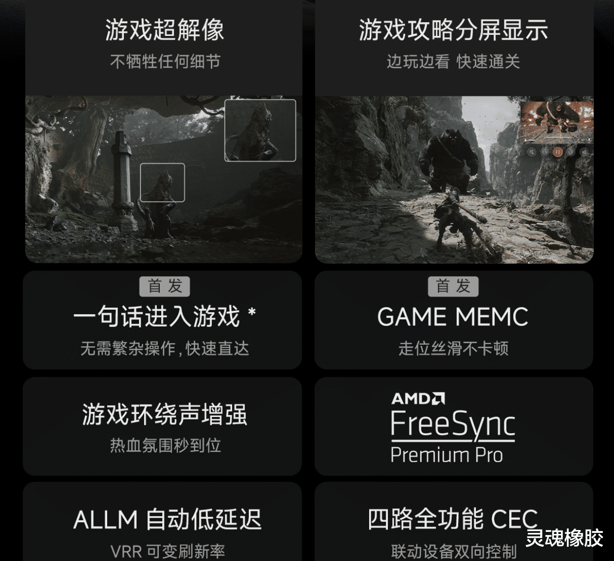 针对影游玩家群体,E8S还行业首创了光影妙控台和游戏妙控台功能。光影妙控台提供了51种色彩参数可调选项,支持一键分享观影大咖的同款调色方案;游戏妙控台则支持多种游戏模式智能适配和参数自定义调节,甚至支持电视分屏功能,让你游戏攻略和主机画面同时看,爽翻天!