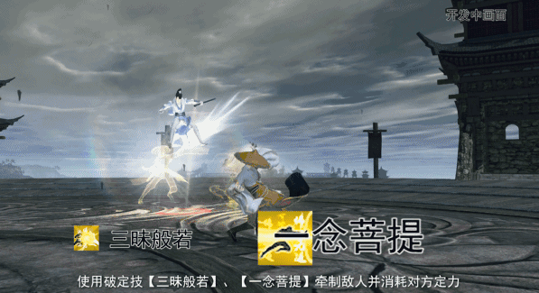 三昧般若:这是雅僧形态下的远程群攻连续技,射程可达 17 米,且无调息时间限制。玩家连按三次,少林即可对目标区域发动三次群体攻击,每次攻击都能造成一定伤害。尤其值得注意的是,当第三段攻击命中目标时,如果目标此时定力值为零,那么将被直接击飞,同时少林玩家还能获得 10 点禅意。此技能在战斗开场时,可用于远程骚扰对手,打乱其进攻节奏,同时快速积累禅意。