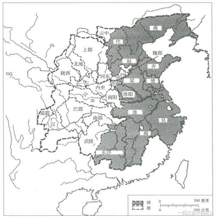 仔细看这个地图,刘邦统一天下之后的局势,其实就跟秦灭六国之前几乎一模一样,当年秦国的基本盘是关中+巴蜀,刘邦也是关中+巴蜀,秦国时的对手是东方六国,刘邦分封的是7个诸侯国。