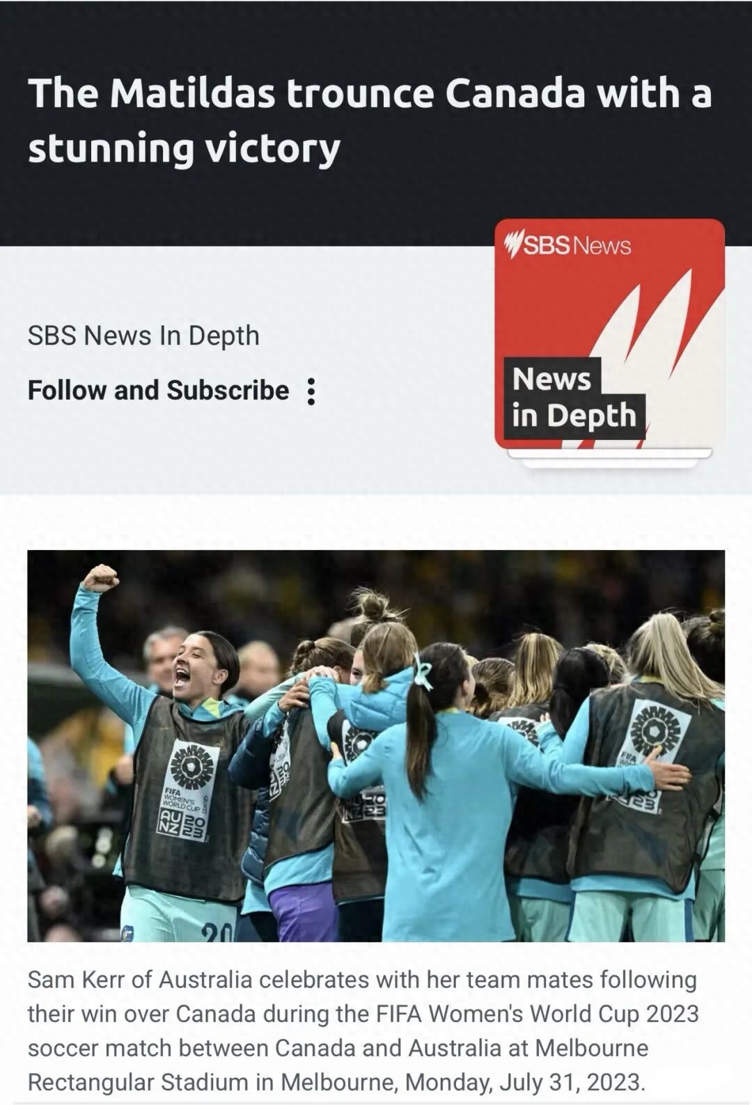 查阅相关资料之后,才发现 Matildas 并非一个不知名的小国,而是澳大利亚女足的昵称。