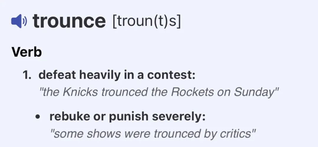 trounce 的词根 trounc 和 trench 一样,表示切割,常用同源词: