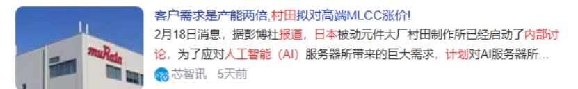 值得注意的是,后续其他产商如国巨、华新科技接下来也将可能会对其MLCC涨价。