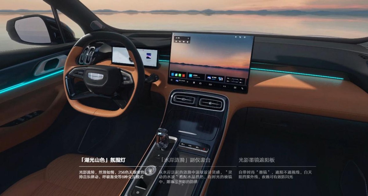 这台车的灯光设计堪称“行走的风景线”,前脸2.4米“鎏光星河”前贯穿灯内含132颗LED灯珠,车主靠近时灯珠从两侧向中间渐次点亮,像一场专属迎宾礼;锁车离开时反向渐暗,用光影传递告别温度。车尾2.9米“璀璨西子”后贯穿灯由190颗灯珠组成,点亮时如西湖波光潋滟,转向时还会以流水效果提示后方车辆,兼顾美观与安全。车内256色“湖光山色”氛围灯支持8种交互模式,带孩子出行时开启童趣闪烁,通勤时切换呼吸渐变,让每段路程都有专属氛围。