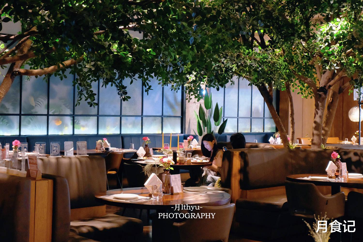 走进来我就被惊艳到了——这也太美了吧!整个空间特别宽敞,居然还有在“树下”吃饭的位置,百叶窗边的座位光影超美,我最爱的是那面花墙,随手一拍都是大片,简直是为约会量身定制的浪漫氛围!