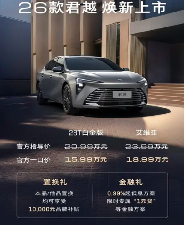 如今,26款别克君越28T白金版一口价仅需15.99万元起,可见别克汽车也扛不住如今价格战愈演愈烈的市场,开始采用这种“降维打击”的方式来吸引消费者。而除了一口价15.99万元起之外,目前26款别克君越还拥有置换礼和金融礼,感兴趣的朋友可以前往线下的门店版亲自了解一番。具体的优惠流程还是要以线下的门店为主。
