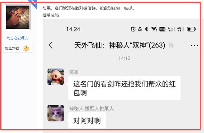 次日下午,敌对帮会成员核查红包领取记录时,发现了这位“外帮人员”的身影。截图一经发至群内,立刻引发众怒,众人纷纷质疑其潜入群内的真实目的。