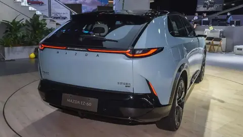 外观设计方面:秉承“造车如艺”的理念,EZ-60打破新能源中型SUV“千人一面”的同质化造型设计,用「魂动」美学打造出独 特的灵魂与韵律:百万级的精工曲面搭配双色悬浮车顶、7种可供选择的车漆颜色,整体视觉效果让人眼前一亮。新车前脸采用马自达品牌家族式设计元素,“立体光雕标志之翼”灯带内置72颗高亮度灯珠,辨识度率先拉满。这种设计现在无论是不是运动车型大家都在用,并不稀奇;然后,引擎盖上也有一处风道,这个设计我们在老款岚图知音和奥迪E5 Sportback上也见过了,尽管可以在高速行驶时增加一定的下压力,但放在一台家用SUV上更多的还是增加运动氛围感,让引擎盖看起来更有层次;让人最意外的,在后排三角窗附近还有两处风道,来说还是第一次见。侧面还有一处设计细节,尽管和大多数电动SUV一样,为了让车身看起来更加修长,马自达EZ-60(图片|配置|询价)在车门下方加入了黑色装饰。但用的是高亮的饰板,上面还有马自达的英文标识,如果标识能点亮,就跟当初的概念车一模一样了。除了两个顶配车型可以选装21寸的轮毂和轮胎外,其他车型均为19寸轮毂+轮胎。说实话,我觉得19寸够用了,既能省电,后续更换的时候还能省钱,21寸好看是好看,但运动胎比较薄,日常磕到马路牙子的话爆胎的概率更大,而且后期换胎成本也更高。新车共提供7种车漆颜色,其中专属的“星云紫”“水天蓝”车漆采用2 - 12μm超细腻珠光颗粒,随角异色性高达 23.7,采用“湿碰湿”三层喷涂工艺,不仅外观亮丽,还能长久保持车身漆面的完 美状态。尾部方面,马自达EZ-60(读测评)采用了极富层次感的设计,采用时下流行的贯穿设计的尾灯组,点亮后具备非常高的辨识度。动感的尾部扰流板配合动感的后包围,增强了运动感。
