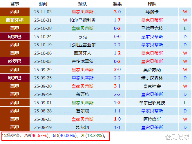贝蒂斯参与了其中一场,首轮遭遇英超球队诺丁汉森林,领先被逆转又扳平,2比2平分秋色,“圆胜”安东尼当时完成传射。贝蒂斯基本数据占优,但被对手多次反击,森林前锋达克鲁兹两次破门。随后两个客场,贝蒂斯2比0卢多戈雷茨、0比0亨克,三轮过后1胜2平,欧战赛场整体表现只能算勉强及格。