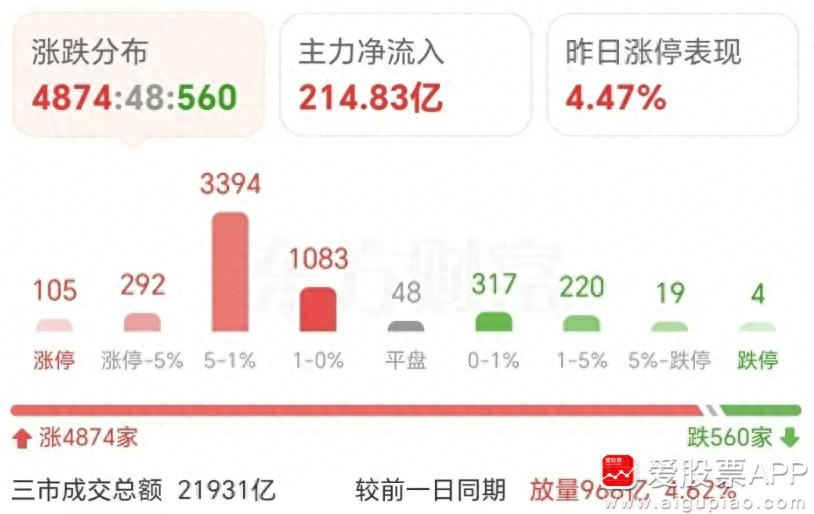 今天A股继续反弹,沪指涨1.3%重回3900,创业板涨超2%。个股4874家上涨,中位数+1.65%,连续2天百股涨停!又是妥妥的普涨行情。