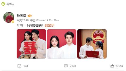 微博上两人先后官宣,彼此郑重地叫了对方老公和老婆。