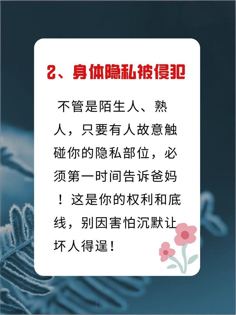 为什么要告诉父母: 这是最高级别的警戒线。身体是你自己的,隐私部位绝对不允许别人随便碰。如果有人让你对此保密,甚至威胁你,那一定是错的。爸爸妈妈知道后,会第一时间保护你,绝不会责怪你。