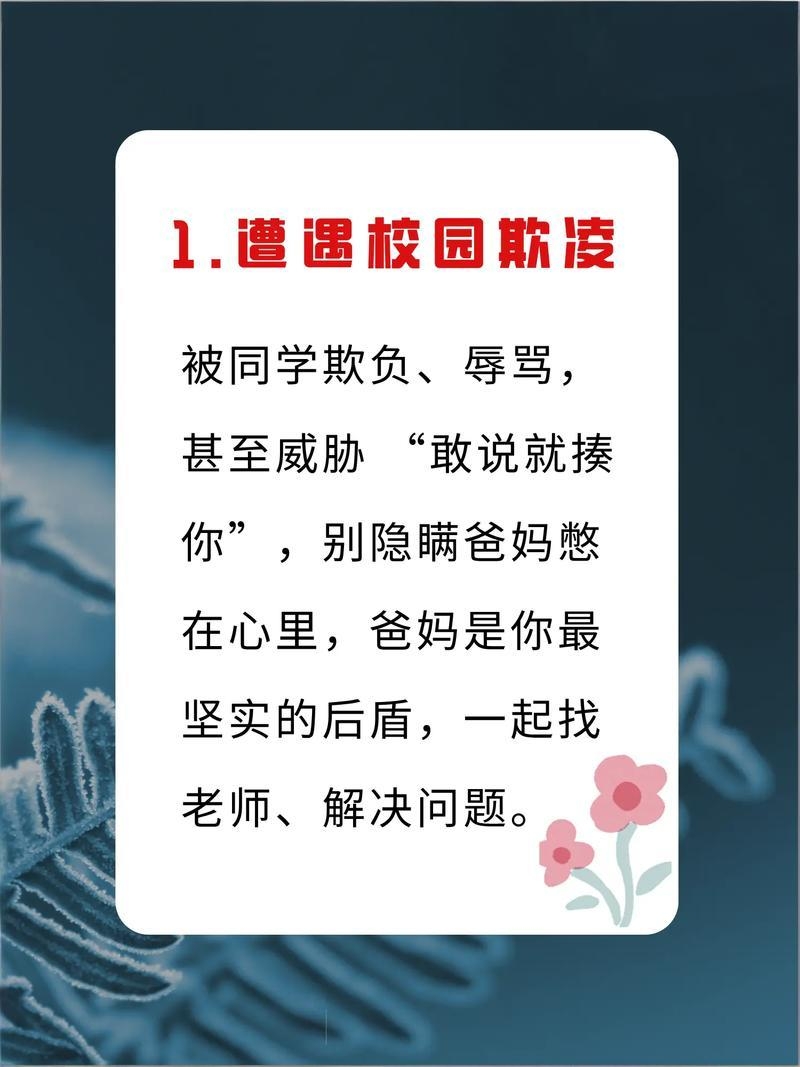 为什么要告诉父母: 欺凌不会自动停止,只会变本加厉。独自承受会带来巨大的心理伤害。父母和老师是你可以依靠的力量,我们一起想办法解决,而不是你一个人面对。
