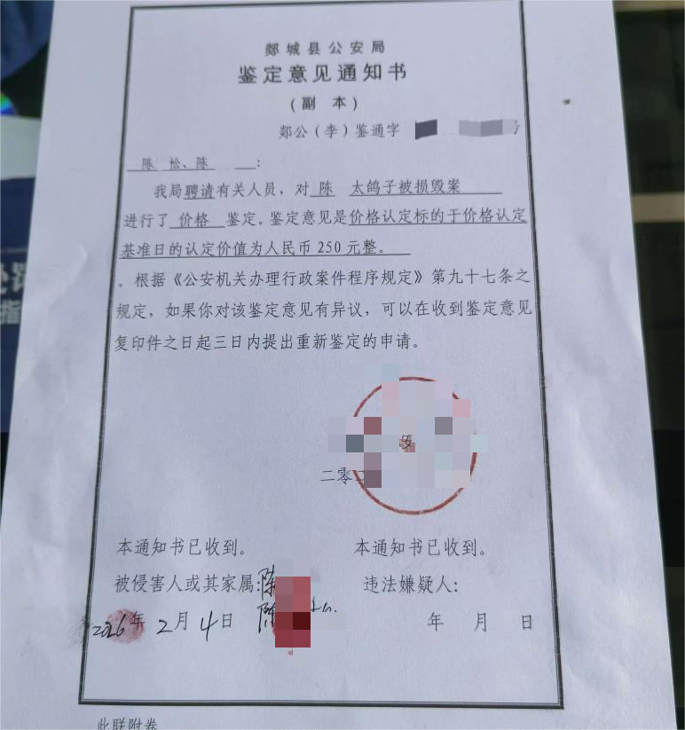 后续办案单位的调查认定结果,让陈某松父子难以接受。警方表示,陈某松所称郭某辰打死五只价值 250 元鸽子的事实,因无监控证据、现有证据不足,故意损毁他人财物的违法事实不能成立,对郭某辰等人不予处罚;郭某辰的辱骂行为也因情节轻微,不予处罚。