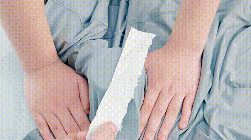 用防晒衣紧紧裹在吹风机上,开最小档冷风,另一端放一张纸巾。开启吹风机之后,可见,风直接透过面料把纸巾吹得飘起来,风力一点都没减弱,肉眼可见的透气。