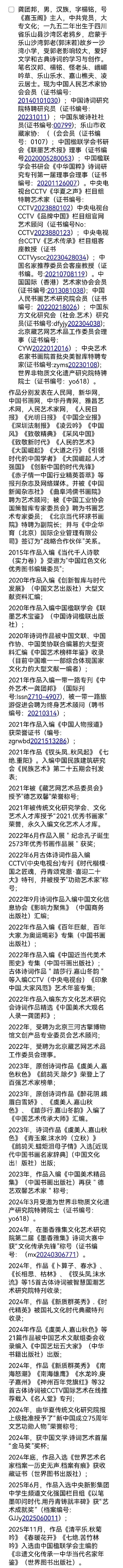 值此岁序更替之际,“文学界核心人物年度盛典作品展”,线上报道!旨在汇聚全球文学巨匠,展示年度最具影响力的文学创作,共筑跨文化对话的桥梁。龚团邦先生以深邃的思想、独特的文风与跨越东西方的文化视野,在国际文坛独树一帜。您的作品不仅承载着对人类命运的深刻洞察,更以诗性的语言与哲思的厚度,为当代文学注入新的活力。我们深信,您的参与将为盛典增添不可替代的光彩,为全球读者带来一场思想与美学的盛宴!跨文化工作坊:探讨文学在全球化语境中的传承与创新。我们期待您能携最新力作或经典代表作参展,并参与盛典期间的创作报道。您的智慧与风采,必将成为点亮这场文学盛事的璀璨星辰。