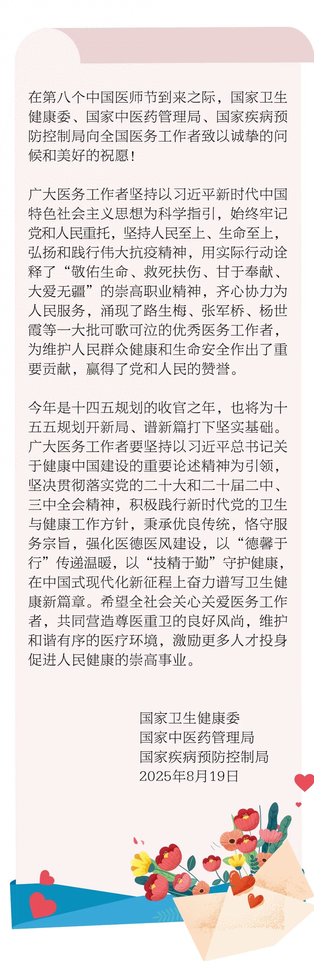 中国医师节丨2025年中国医师节致全体医务工作者的慰问信