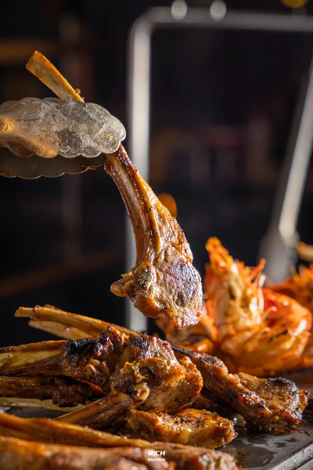 不远处的西式档口已准备就绪,香气满盈,现烤羊排带着诱人的焦褐色,厚切牛排则在铁板上滋滋作响,大口吃肉的满足感瞬间拉满。