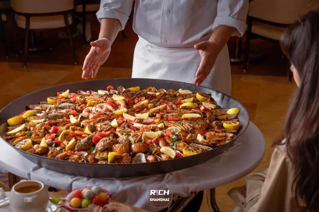 更有西班牙烩饭plus版现场派送,金黄的米饭饱含海鲜的精华,配上各式贝类、虾、鱿鱼,每一勺都带着南欧海岸的温热,尝尽地中海风情。
