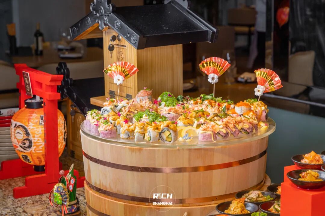 日本料理区除了刺身,寿司也是舌尖上的心动密码,手握、卷物、军舰等多样形态整齐陈列,每一款都藏着大厨的巧思与食材的本真,创意搭配,惊喜不断。