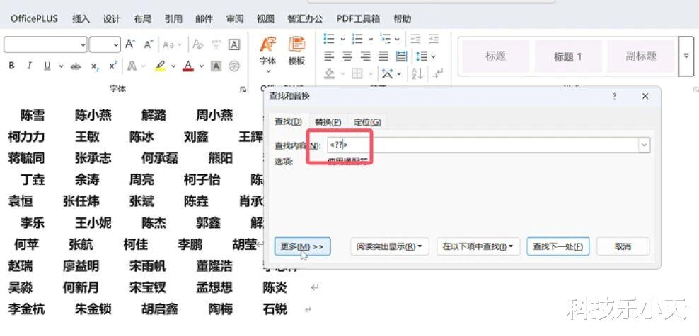 选择查找选项,在查找内容中输入小于号和大于号,中间打两个问号