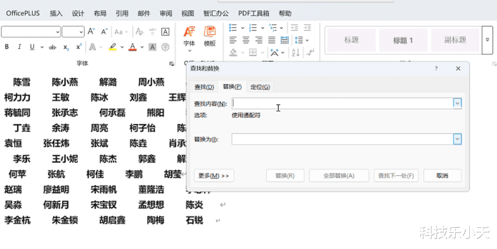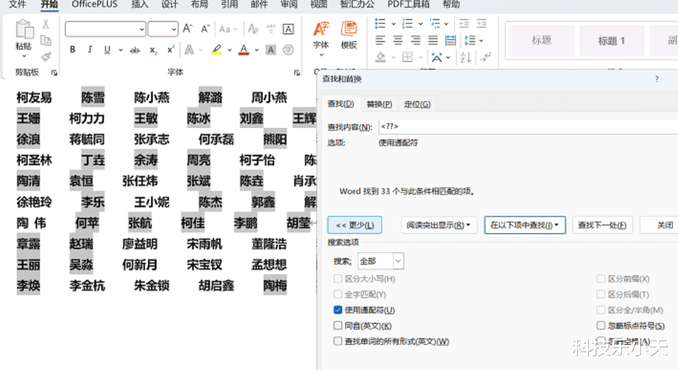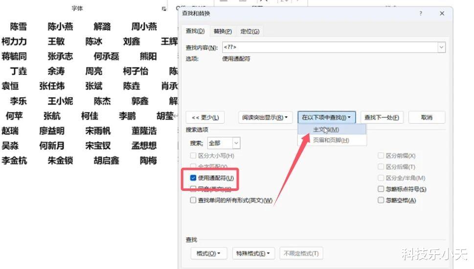 然后点击更多,勾选使用通配符,在以下项中查找选择主文档