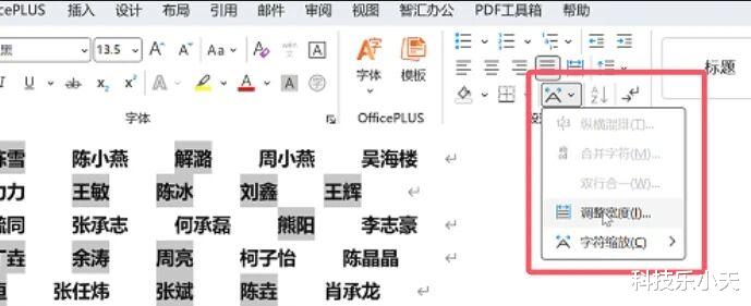打开中文版式,点击调整宽度