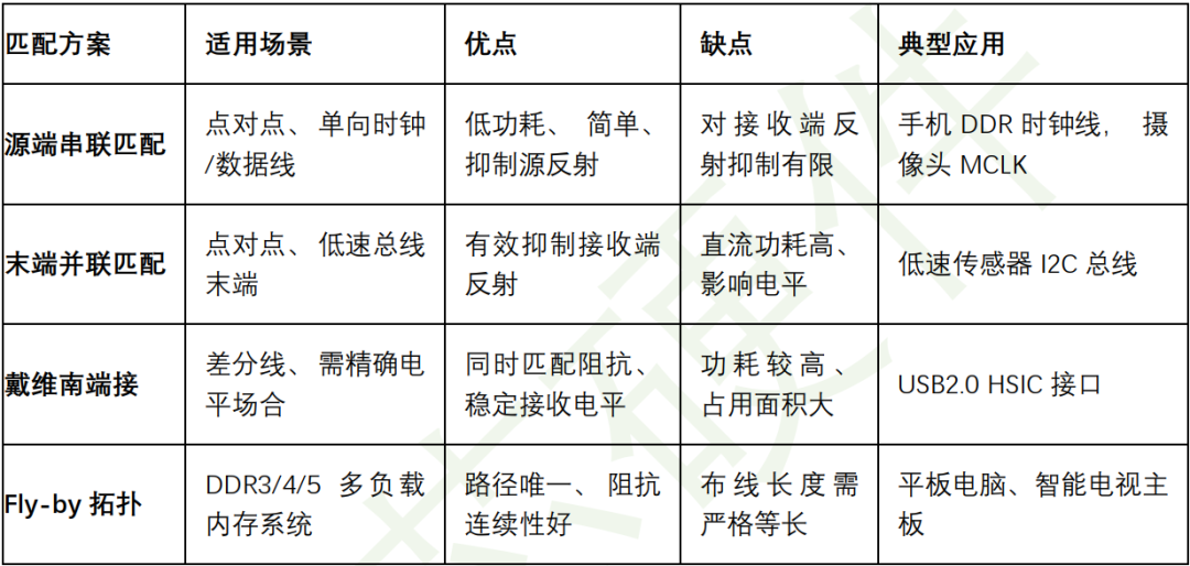 然后匹配策略是消耗反射能量。其中端接电阻(Termination)被公认为最常用且有效的方案。比如源端串联匹配,即在驱动器输出端串联电阻(Rs ≈ Z0 - Z_driver_output)。适用于点对点时钟信号(如手机主控到内存的CLK线)。其优势是功耗低、布线简单。