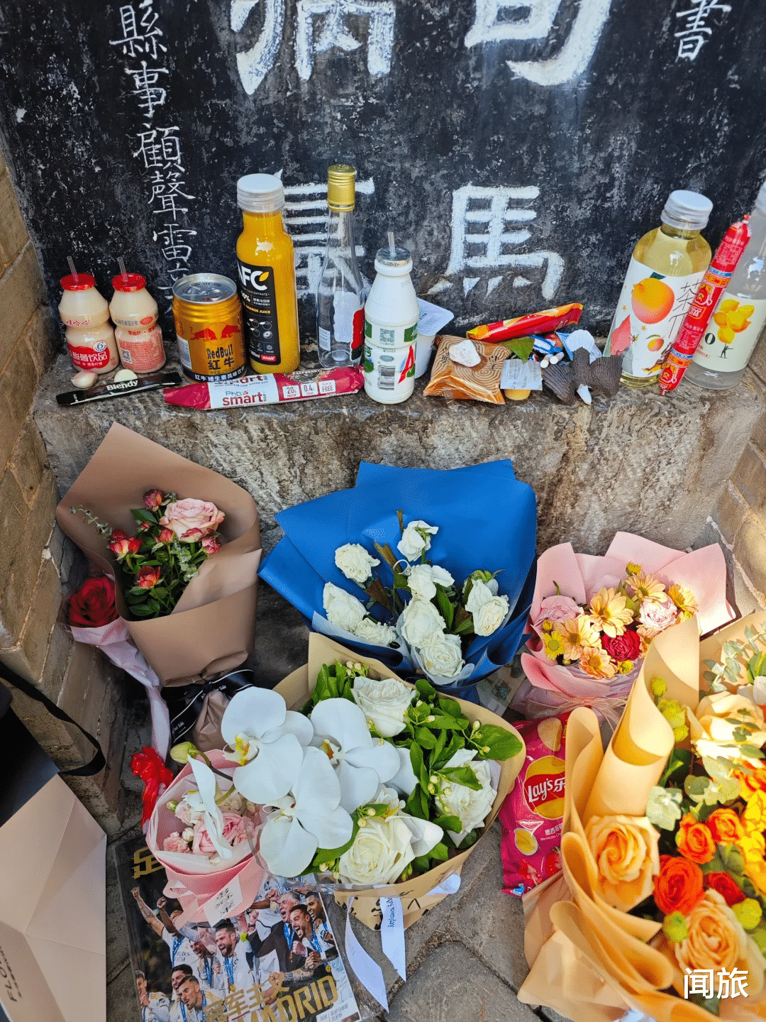 还有更绝的,给霍去病墓前放零食,辣条、糖果、巧克力、奶茶应有尽有,因为大家都记得骁勇善战的“冠军侯”二十三岁就没了,太年轻,放到现在应该是正爱吃的时候,得多吃点好吃的。